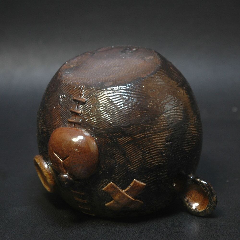 ろくろ成型後、表面をくしのような道具でならし、目や耳などのパーツが取り付けられた