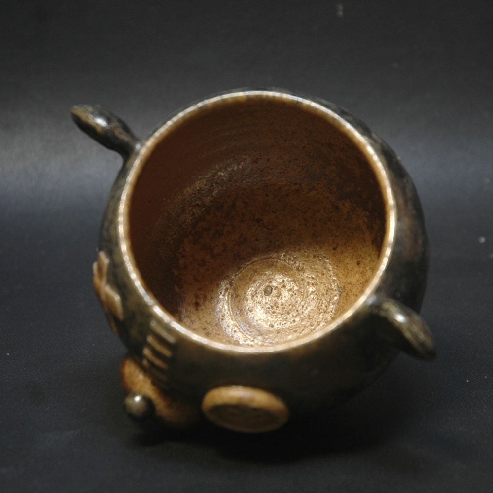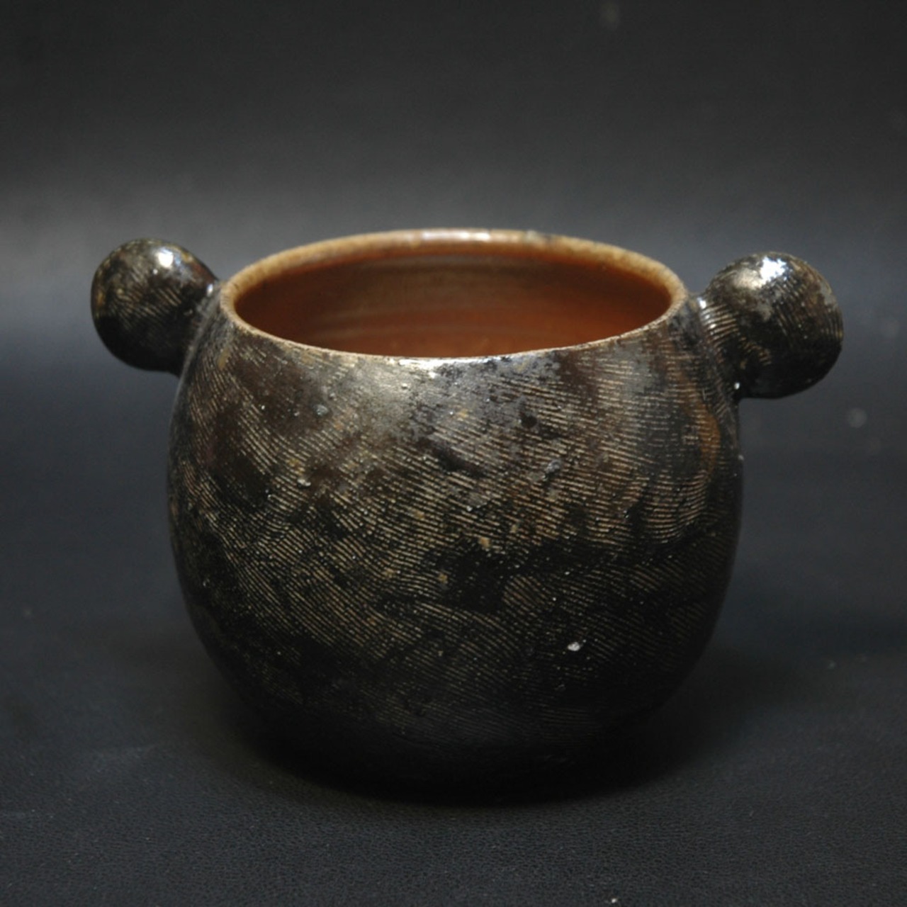 黒い部分には、焼成前に黒く発色するように調整された塗り土を施しています。