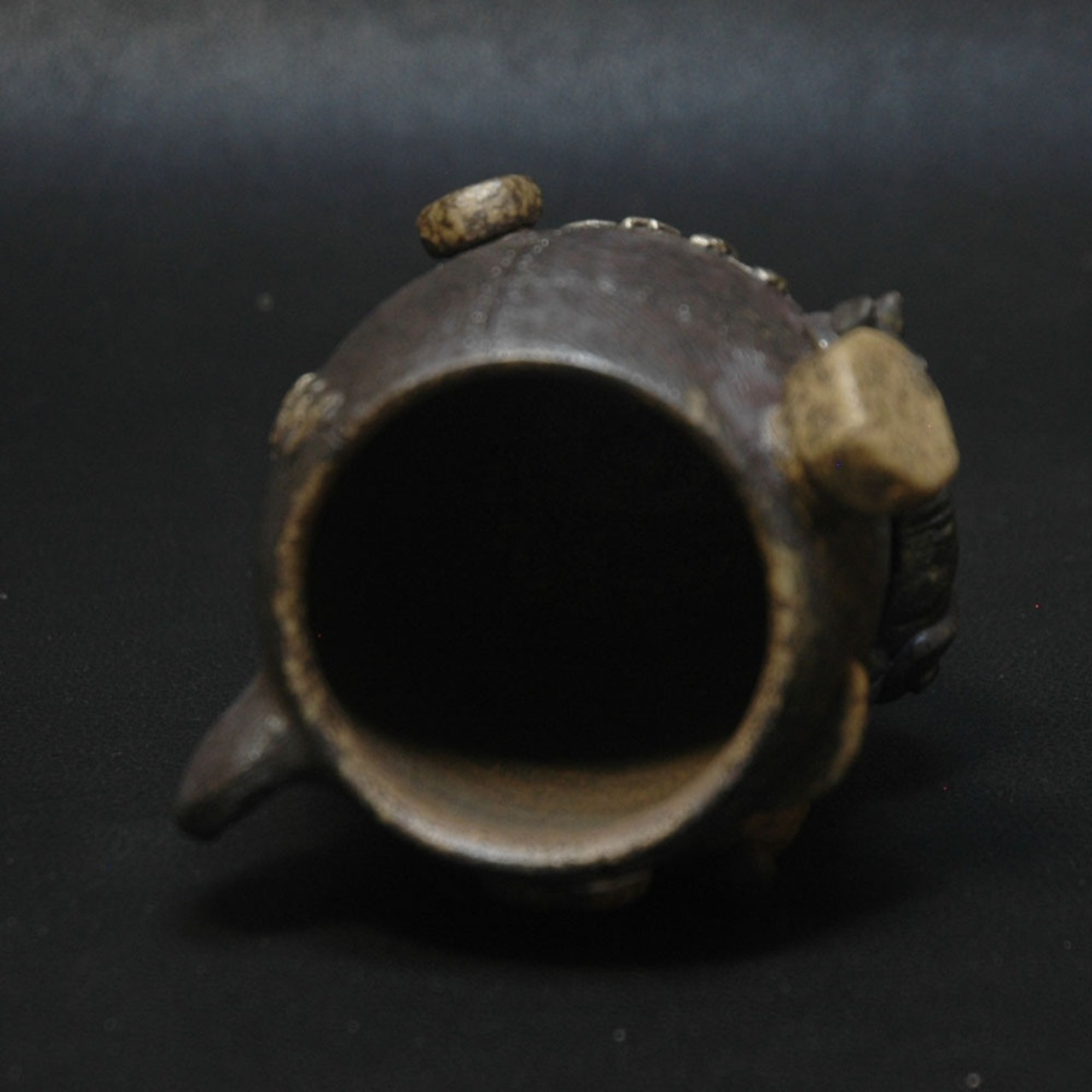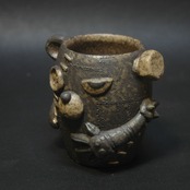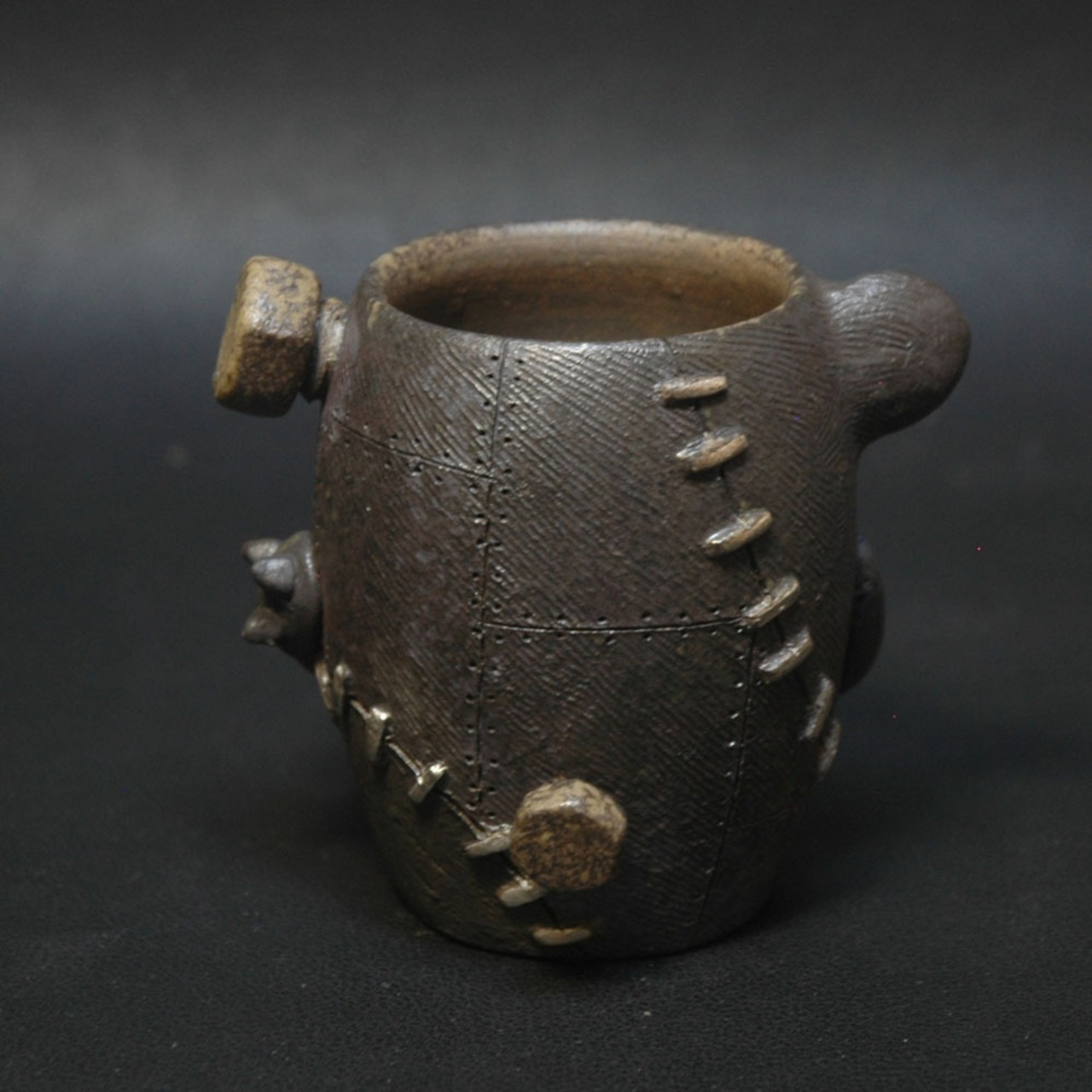 焼成前に黒く発色するように調整された塗り土と含鉄素材が塗られてしています。