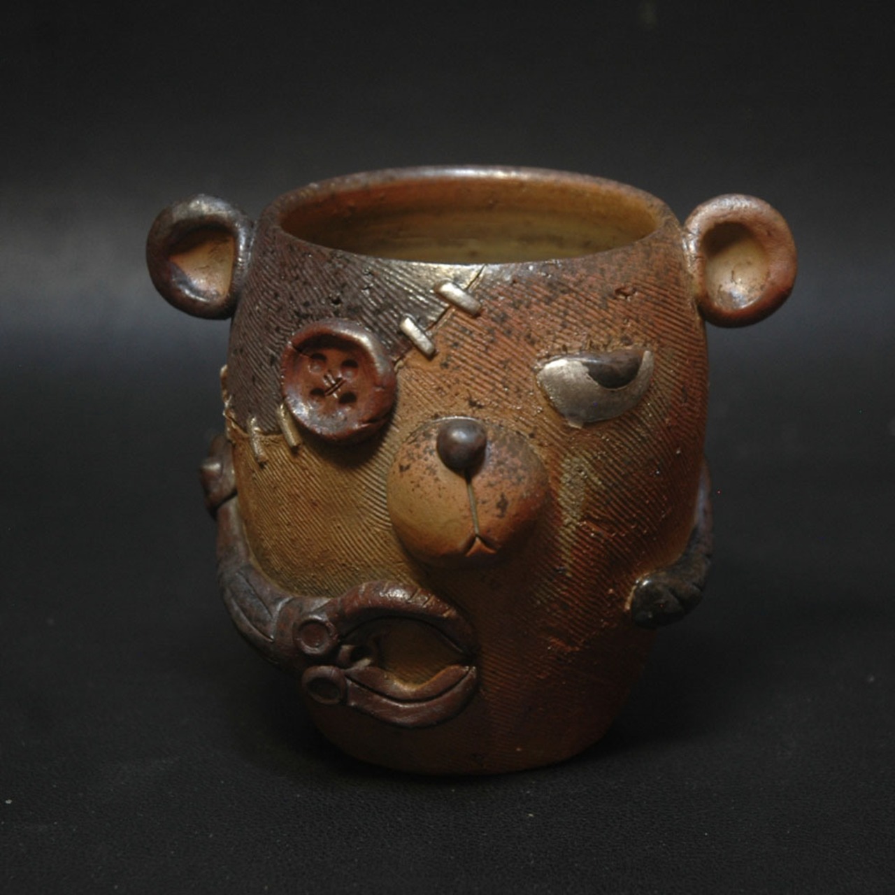 焼成後、ステッチと目の部分に銀彩が施されています。