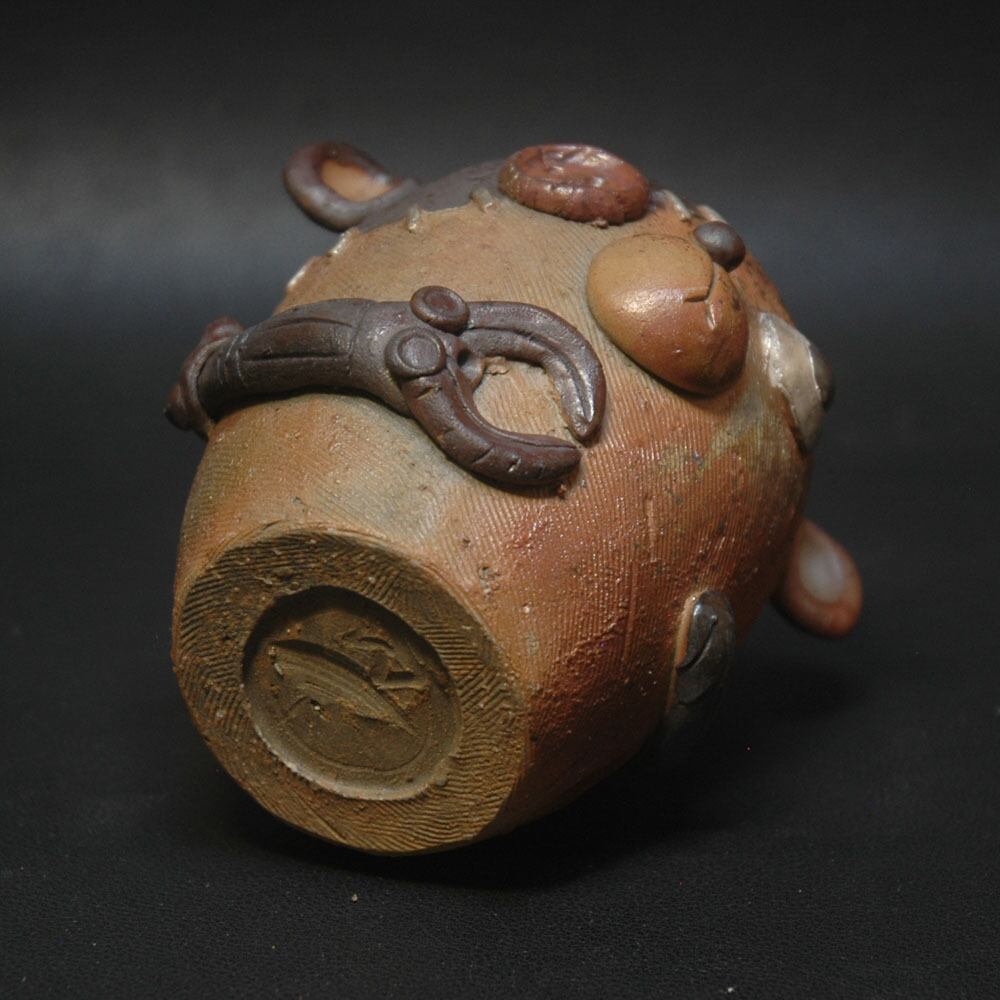 焼成前に黒く発色するように調整された塗り土と含鉄素材が塗られてしています。