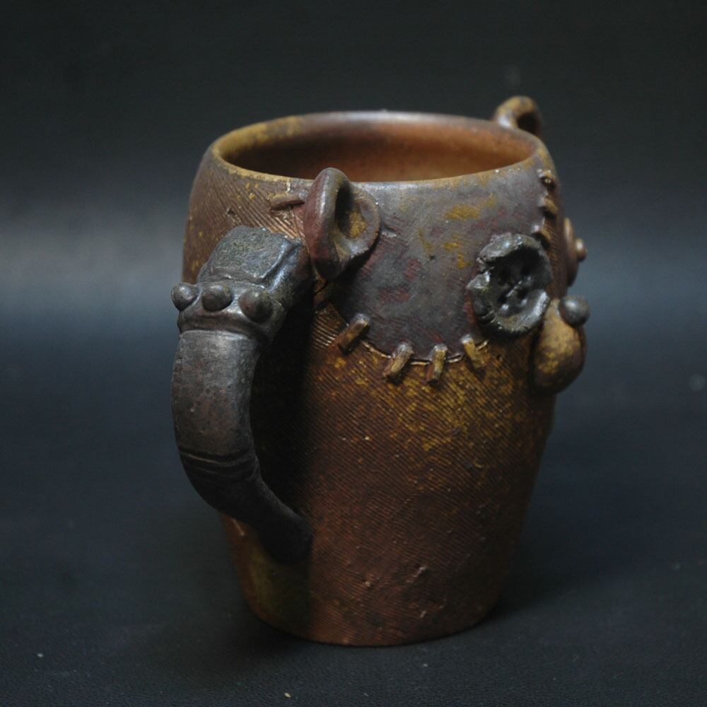 メカニカルな右腕がハンドルになっているクマロボをモチーフにした独特のデザインのマグカップです。
