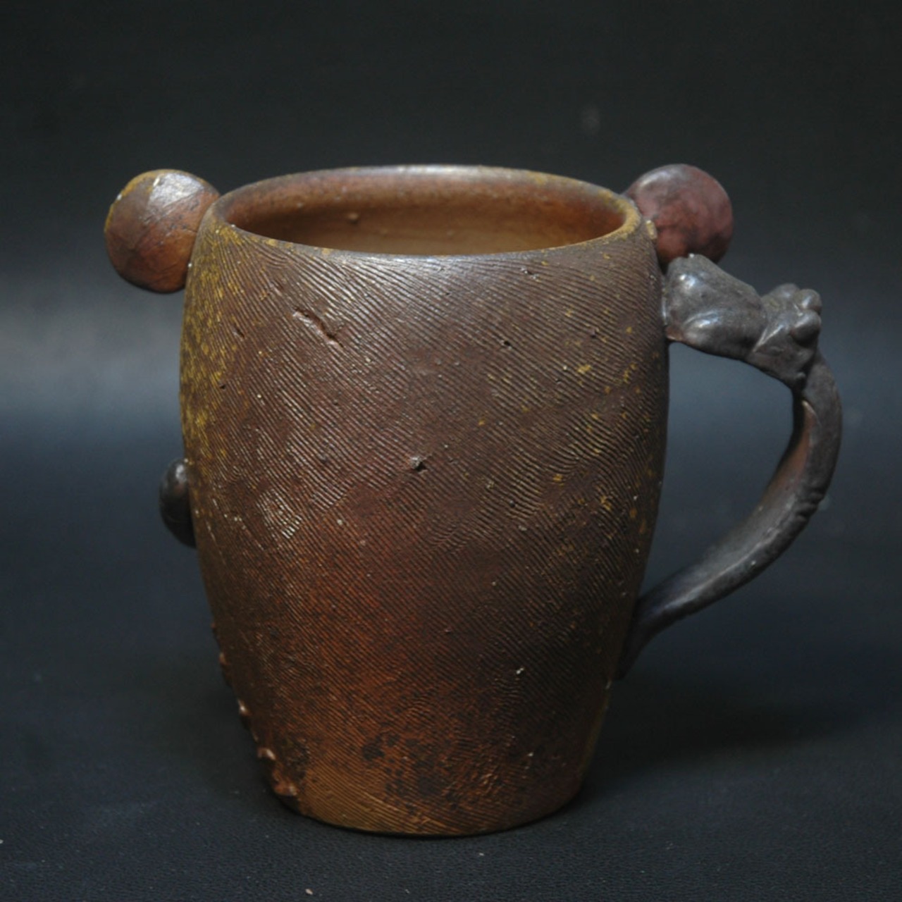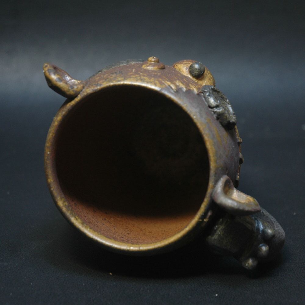 焼成前に黒く発色するように調整された塗り土と含鉄素材が塗られてしています。